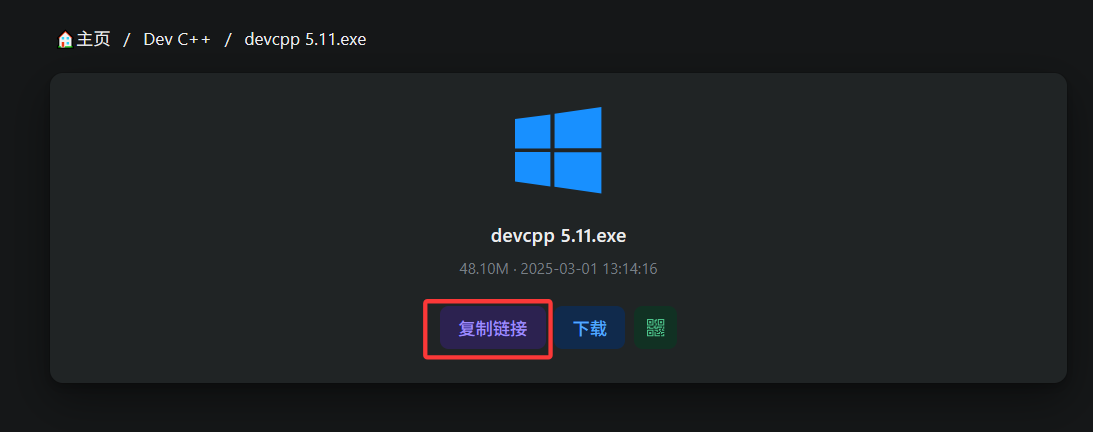 此时如果需要下载软件,先在软件站找到自己要下载的软件,点开后单击复制链接按钮: