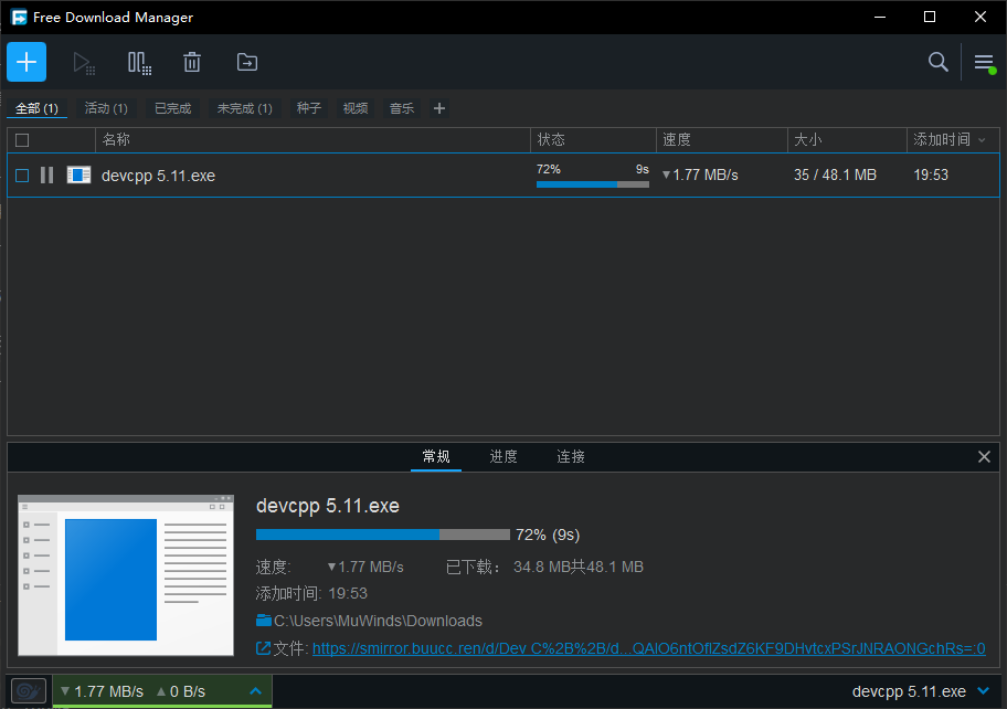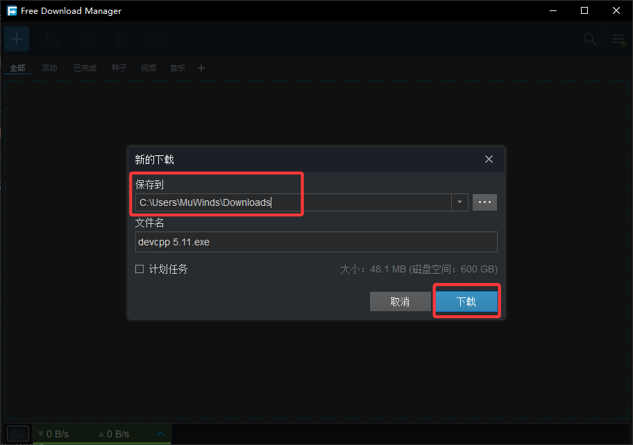 选择自己文件保存的路径和名字,单击下载即可开始下载: